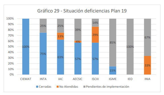 - La aprobación de actuaciones de control horizontal sobre ámbitos concretos de la gestión. En el caso concreto de los OPI´s, y al objeto de dotar de contenido a las actuaciones de control, al no existir una fiscalización previa, desde la I.G.A.E. (Intervención General del Estado- Oficina Nacional de Auditoria), con base en análisis previo de riesgos, se han impulsado diversas actuaciones en los últimos ejercicios, entre las que podemos destacar las siguientes: control horizontal sobre la Tesorería, sobre la contratación (procedimientos abiertos, negociados sin publicidad y en la actualidad, en periodo de ejecución, de contratos menores), Ingresos, subvenciones. Aprobado para el ejercicio 2022 se llevará a cabo el control horizontal del Personal. Fruto de estas actuaciones, con carácter anual, es aprobado y publicado un informe global sobre los principales resultados de las actuaciones de control del plan de control financiero permanente y del plan de auditorías y en donde se realiza un análisis de la situación de los planes de acción de ejercicios anteriores al objeto de valorar la puesta en marcha y eficacia de las medidas aplicadas por parte de los gestores para subsanar la irregularidades e ineficiencias, en su día, observadas.